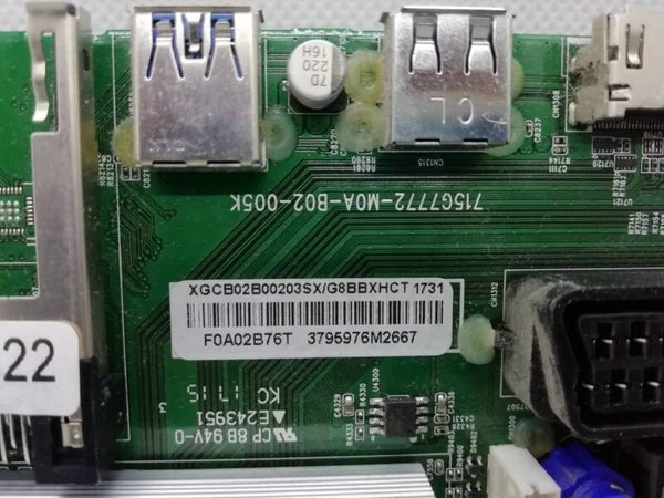 Part number 715G7772-M0A-B02-005KBoardnumber 703TQGPL405 F0A02B76TModelnummer 55PUS6581 Part type Mainboard Tv Type and size Philips 55PUS6581/12