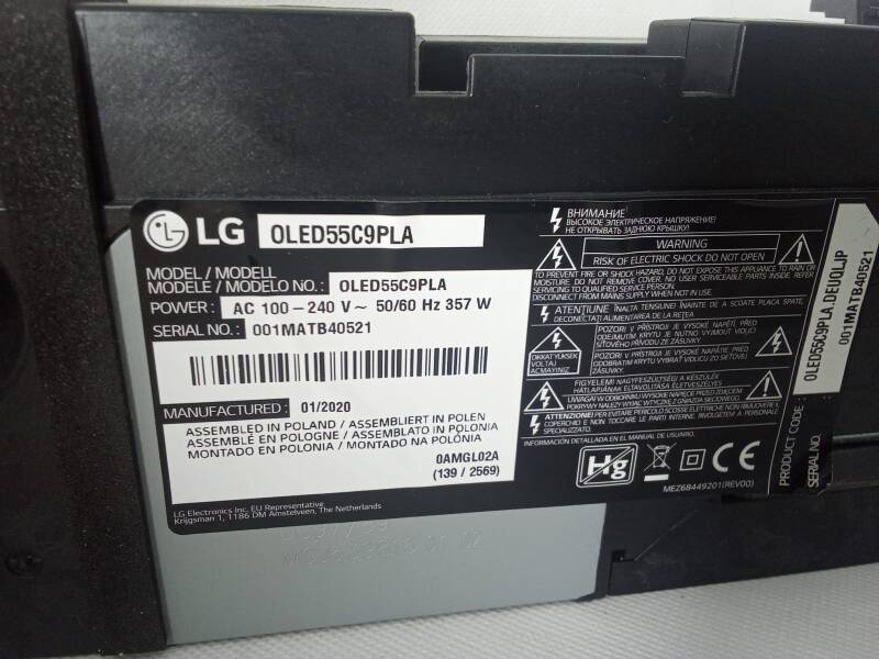 Tv Type and size LG OLED55C9PLA
