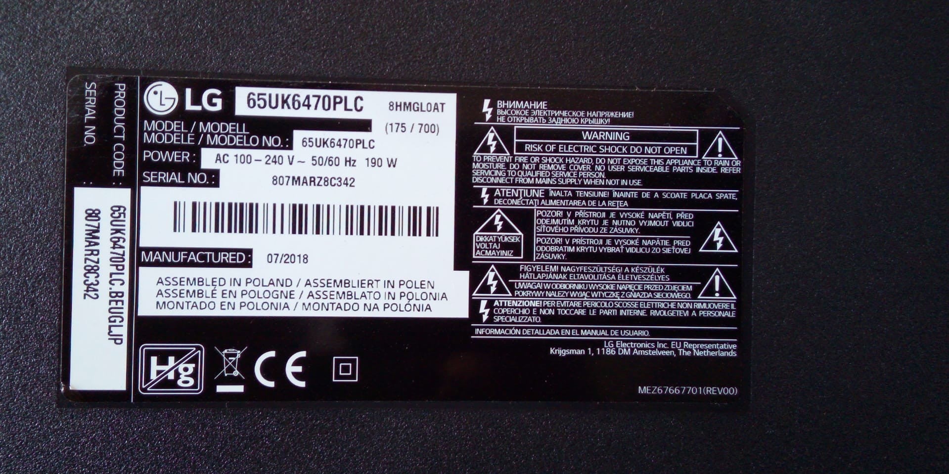 Mainboard LG 65UK6470PLC EBT65553903 EAX67872805 (1.1)