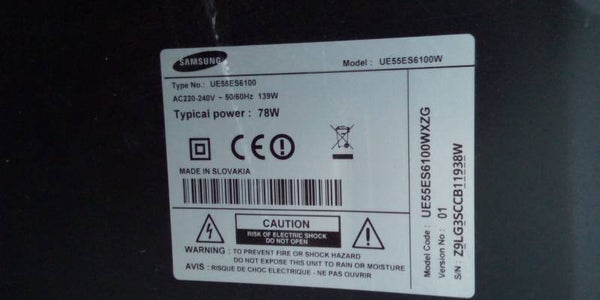 Tv Type and size Samsung UE55ES6100W