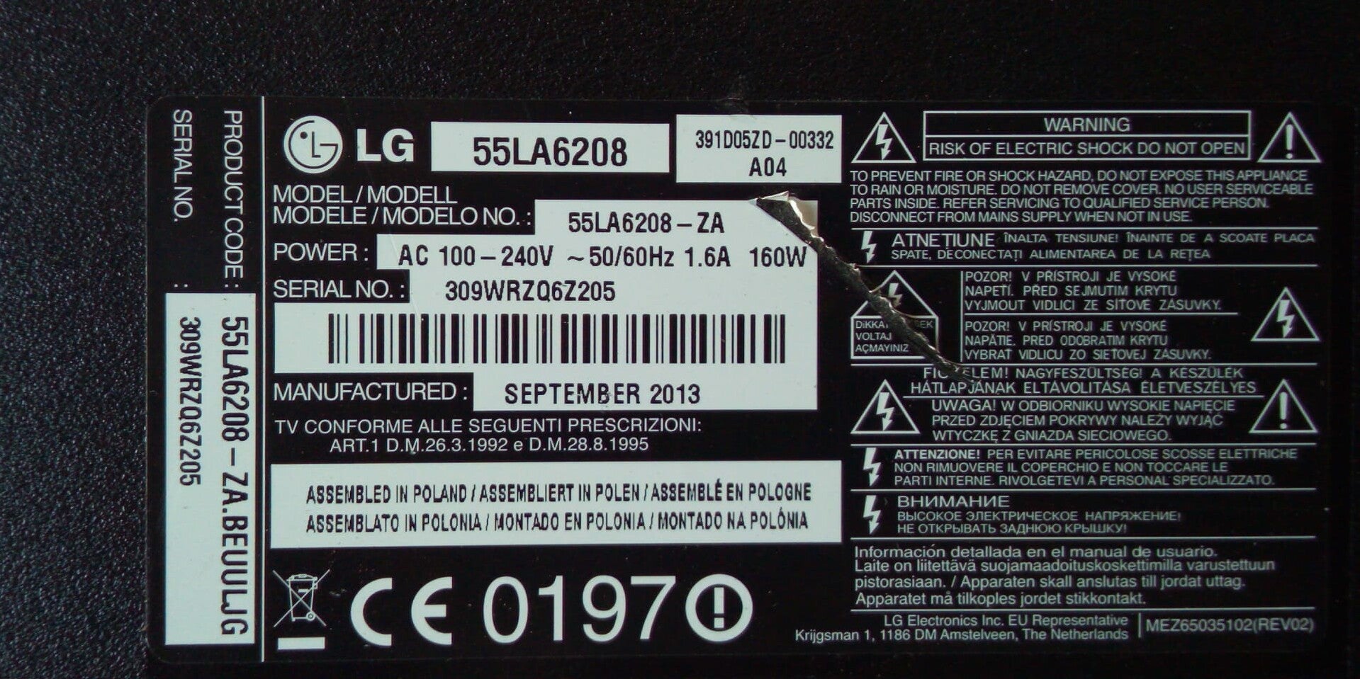 Mainboard LG 55LA6208 EBT62297950 EAX64797003 (1.2)