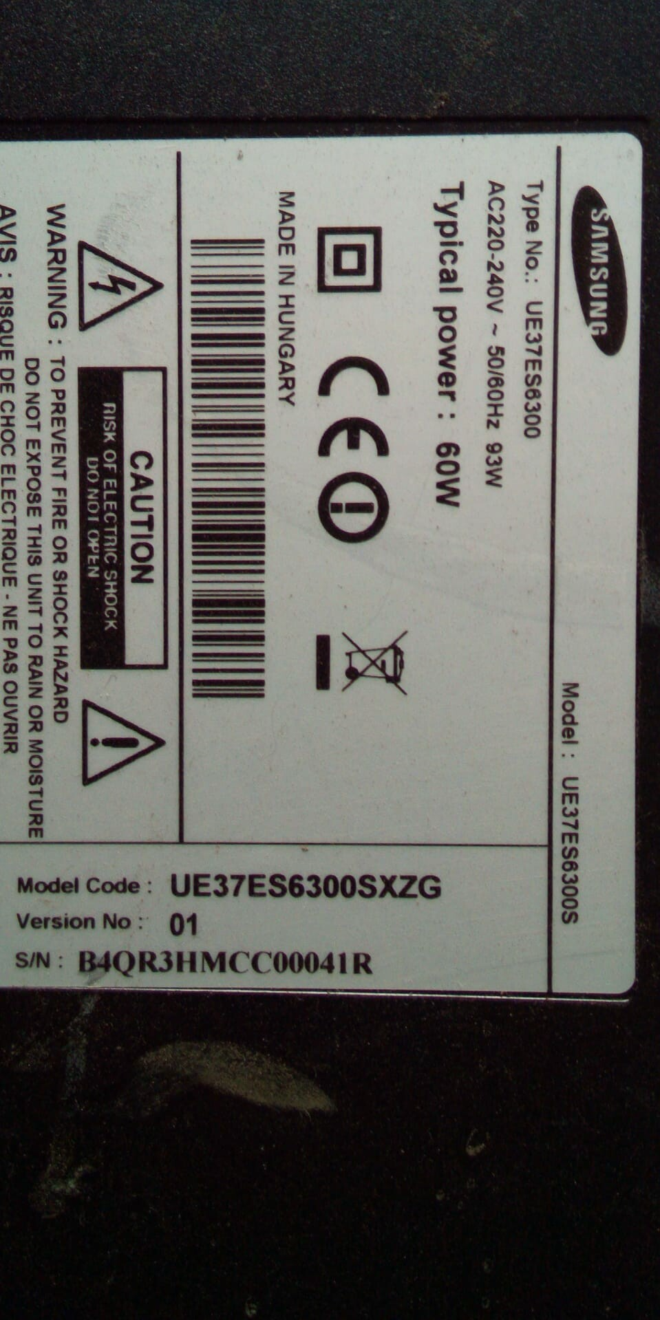 Modelnummer UE37ES6300S