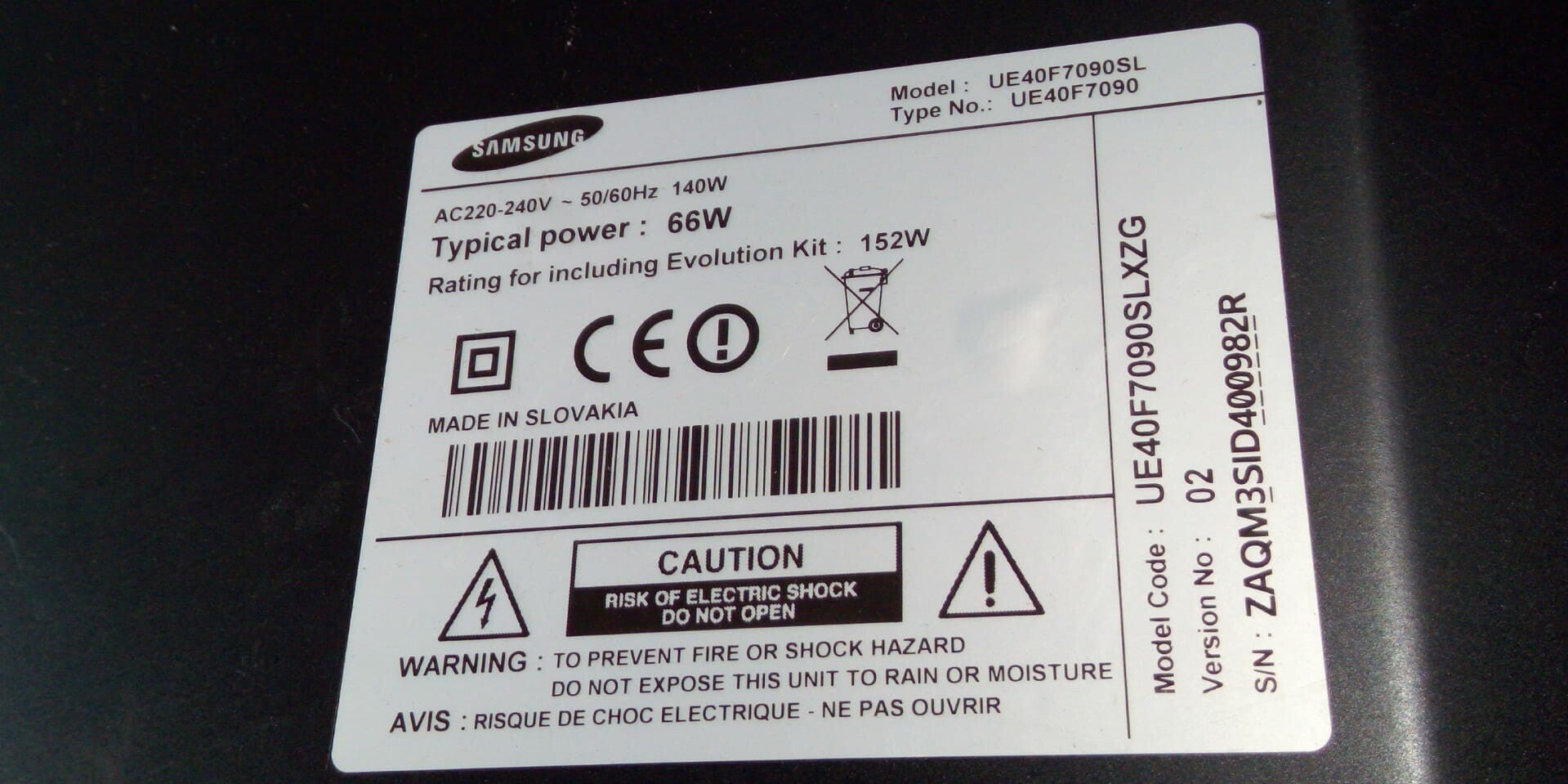 Modelnummer UE40F7090SL