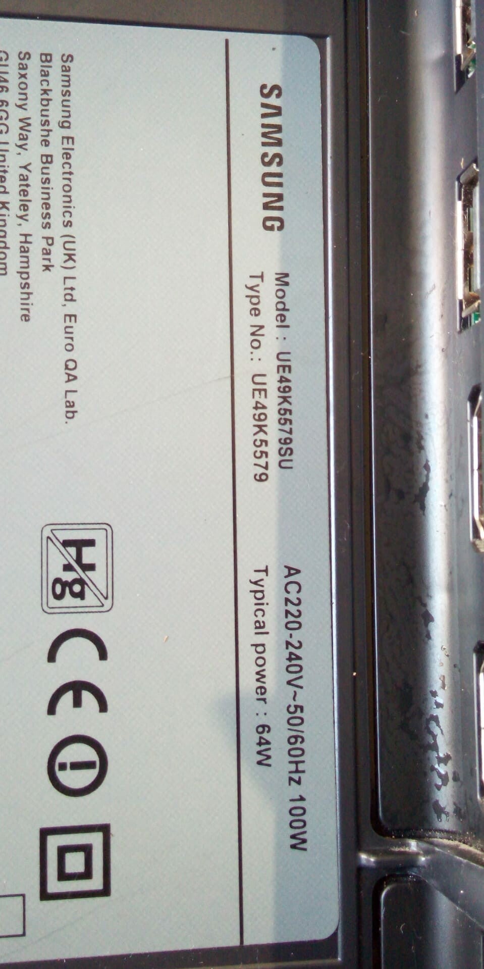 Tv Type and size Samsung 49 Inch UE49K5579