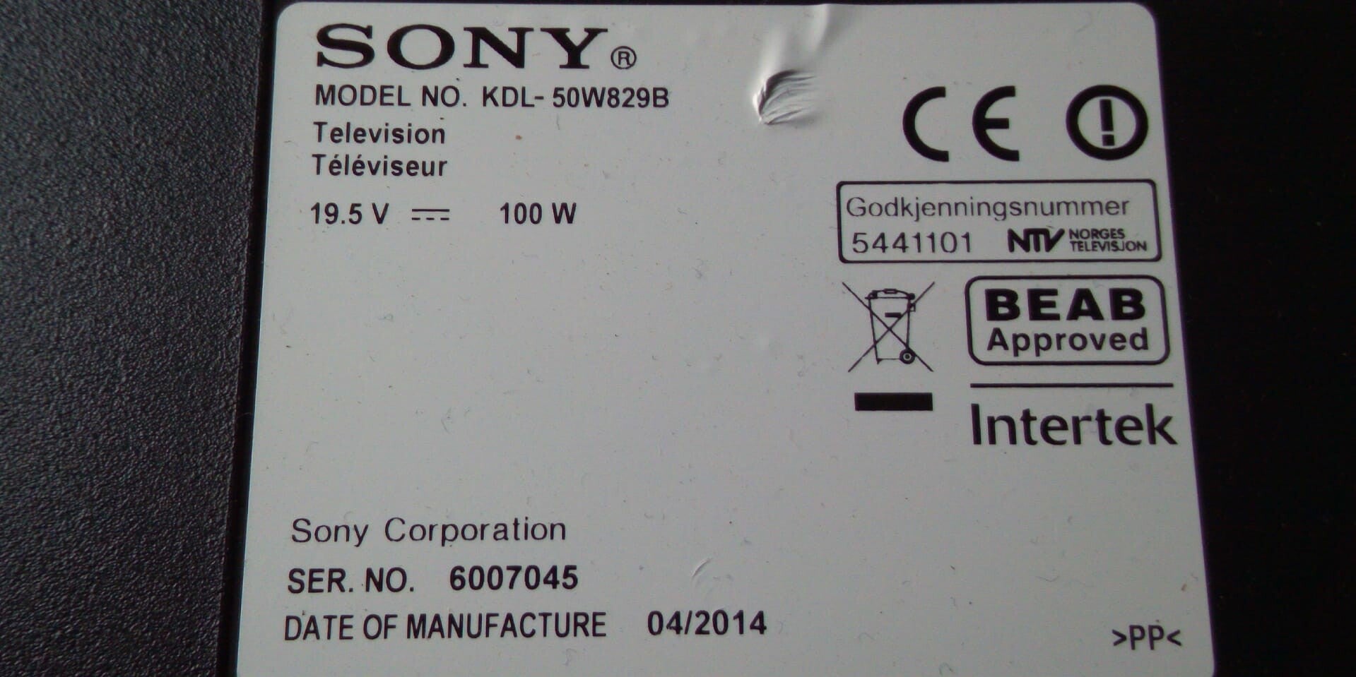 Modelnummer KDL50W829B