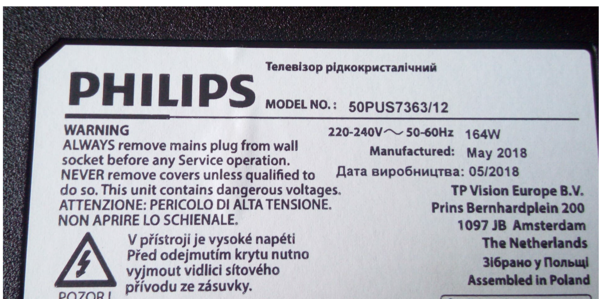 Mainboard Philips 50PUS7363/12 703TQIPL072 I0A02B69T 715G8579-M0C-B01-005T