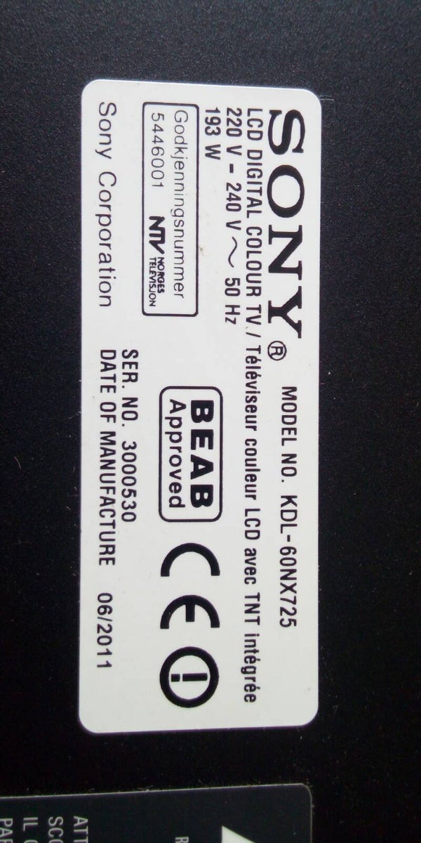Mainboard Sony KDL-60NX725 1-883-754-11 188375411 Y2009710A