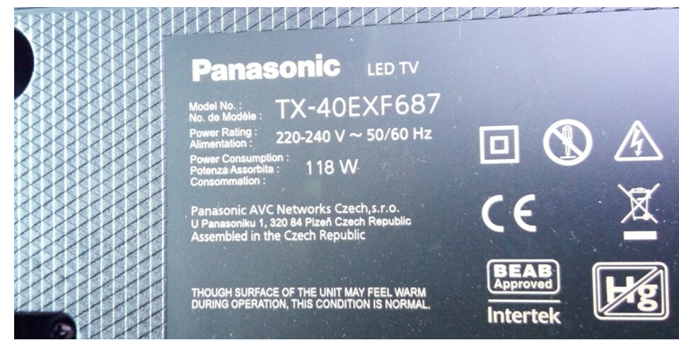 Tv Type and size Panasonic TX-40EXF687