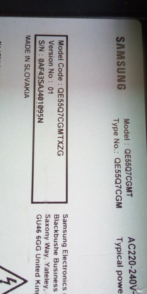 Tv Type and size Samsung 55inch QE55Q7CGMT