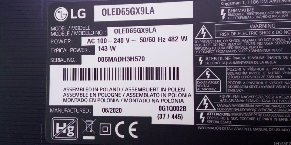 Mainboard LG OLED65GX9LA EBT66441702 EAX69066607(1.0)