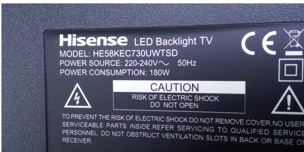 Tv Type and size Hisense 58inch HE58KEC730UWTSD