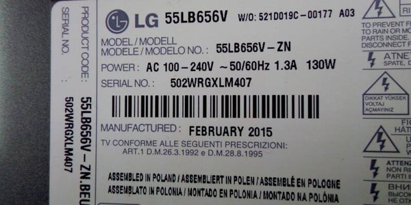 Tv Type and size LG 55inch 55LB650V 55LB656V