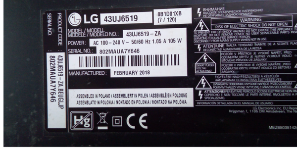 Tv Type and size LG 43inch 43UJ6519