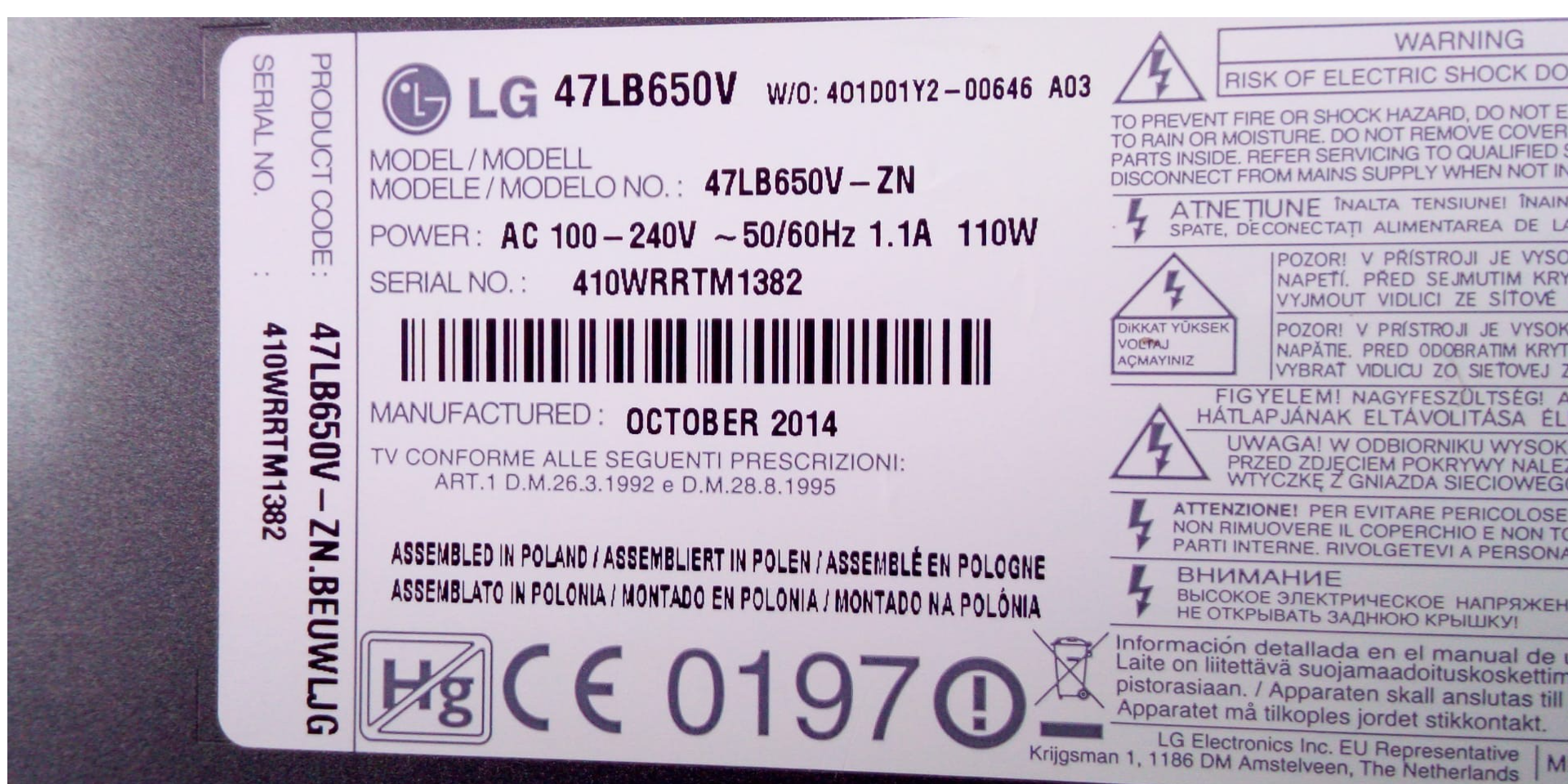Tv Type and size LG 47LB650V