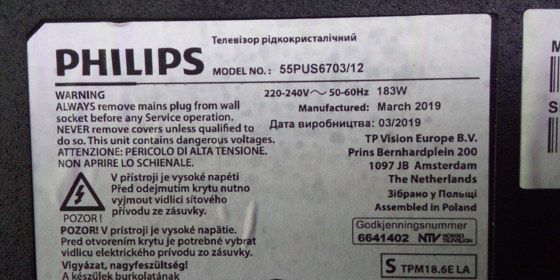 Tv Type and size Philips 55 inch 55PUS6703/12