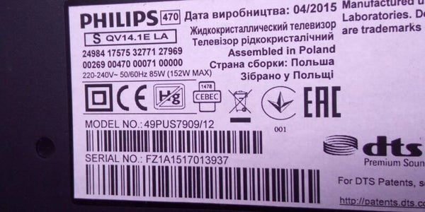 Mainboard Philips 49PUS7909/12 715RLPCB0000000401 300RASEL0000001583