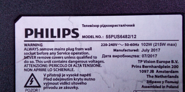 Mainboard Philips 55PUS6482/12 705TQHPL092 715G8579-M01-B00-005Y