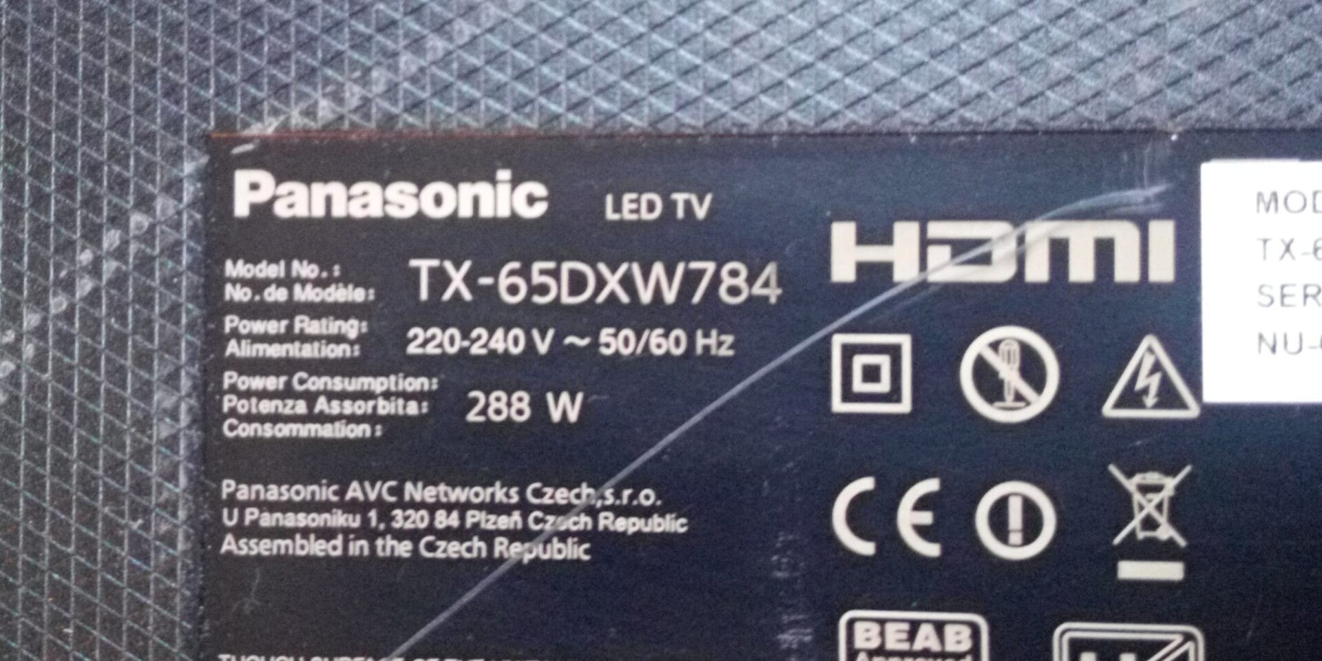 Tv Type and size Panasonic 65inch TX-65DXW784