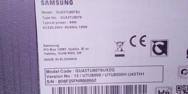 Tv Type and size Samsung 43 inch UE43TU8079U
