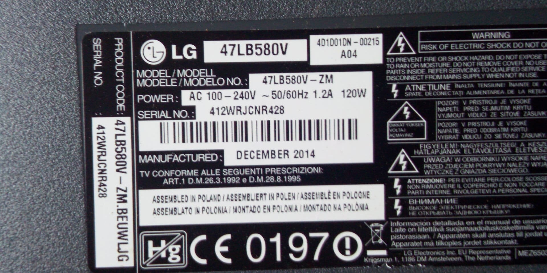 Modelnummer 47LB580V