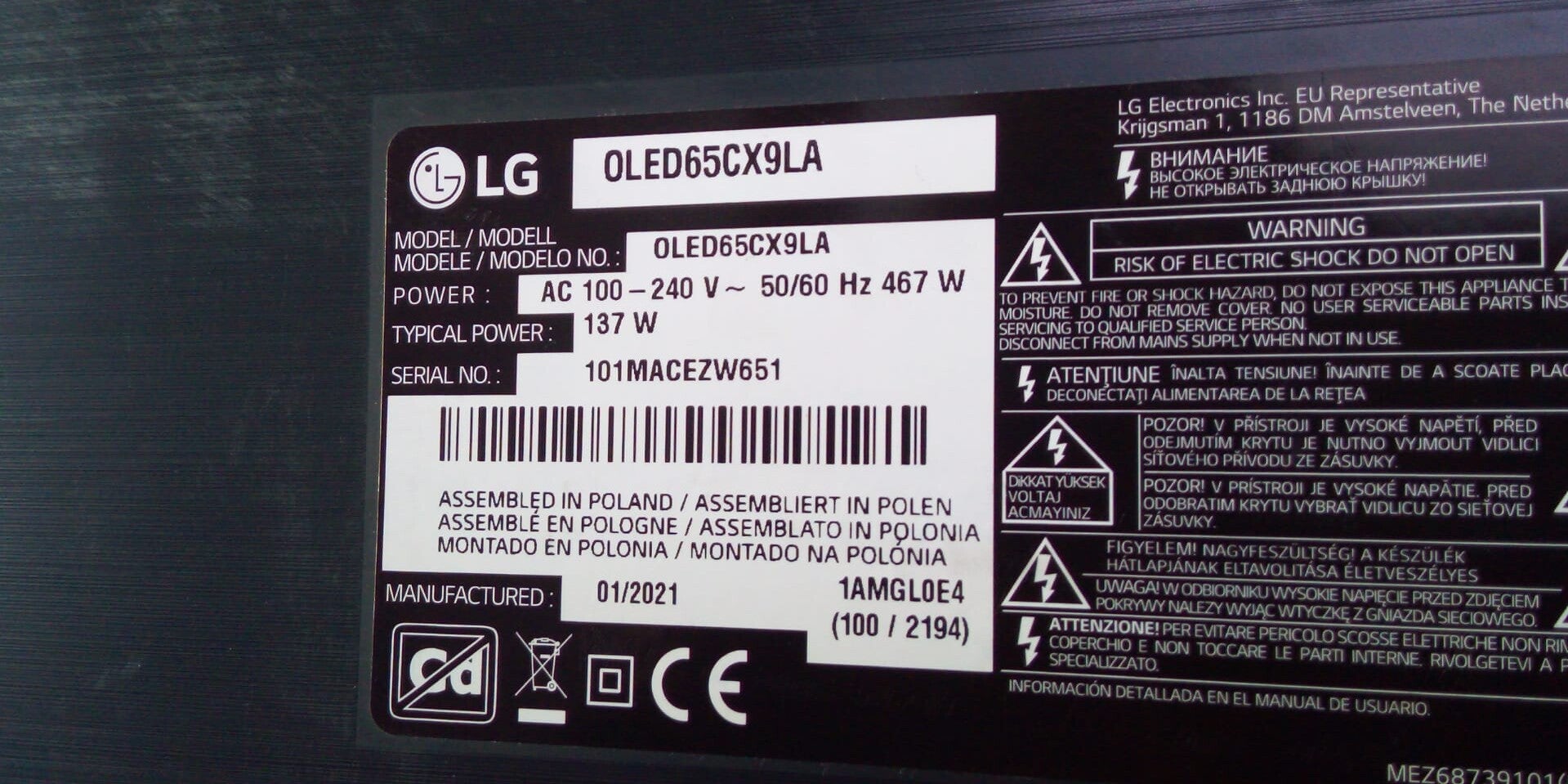 Tconboard LG OLED65CX9LA LE650AQD-ENA1-TJA 6870C-0852A