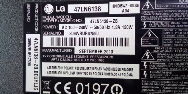 Modelnummer 47LN6138 50LN5406 47LN6138 50LN5406 50LN575S 47LN6138, 47LA6208, 50LN5778, 50LA6208, 47LN5400, 50LN5406, 47LN5708 47LM6138, 47LN5758, 47LN5778 47LN5708, 47LN5406, 47LN6138